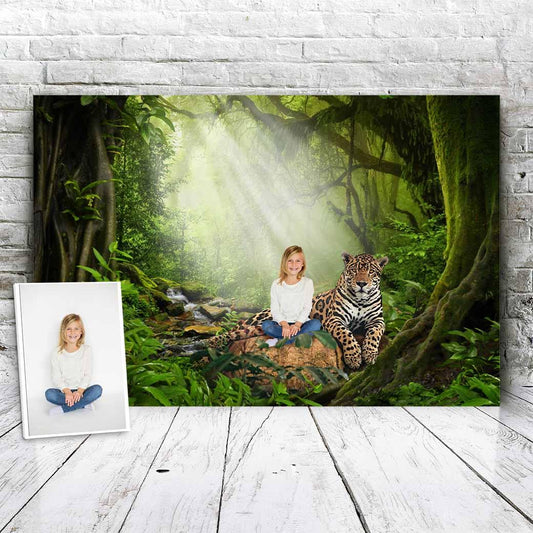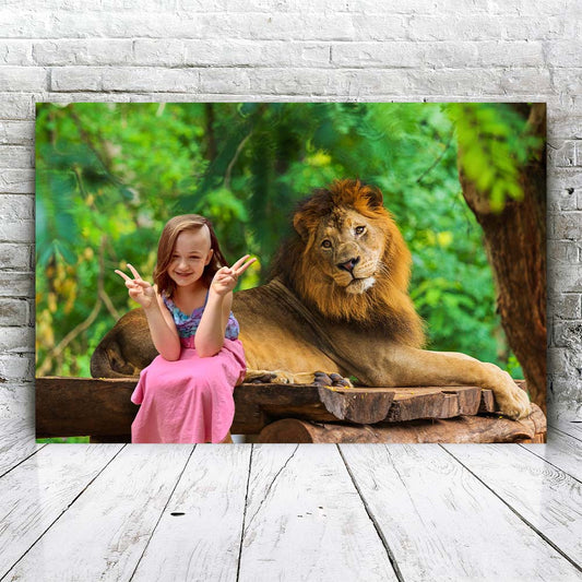 All you need to do is give us a photo of your child, family member, or friend, and we'll create a beautiful portrait where they are standing next to amazing animals. Lions, zebras, pandas – you name it, we've got it!