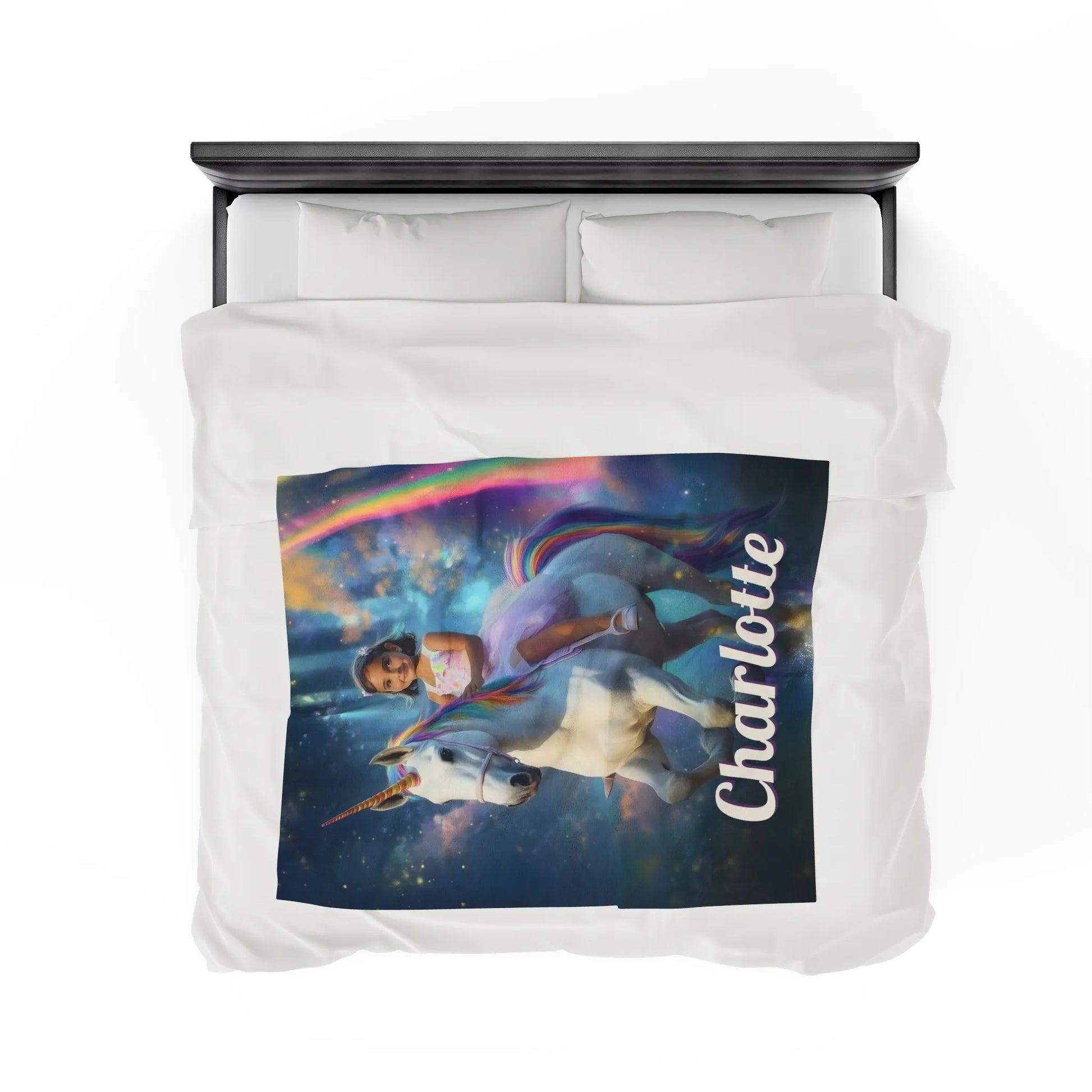 Transform bedtime and cozy moments into magical adventures with our Personalized Unicorn Blanket! Featuring a beautiful design of your child riding a majestic unicorn, this blanket isn’t just for warmth—it’s a portal to a world of dreams and imagination. Whether it’s for snuggling, bedroom decor, or a one-of-a-kind gift, this keepsake will be cherished for years to come.