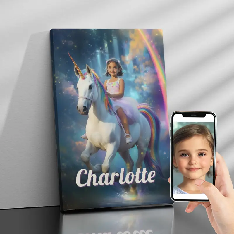 With Riding the Unicorn, you’re not just gifting a portrait; you’re giving a memory that will inspire joy and wonder every time they look at it. Simply upload a photo, optionally add their name, and let the magic begin!