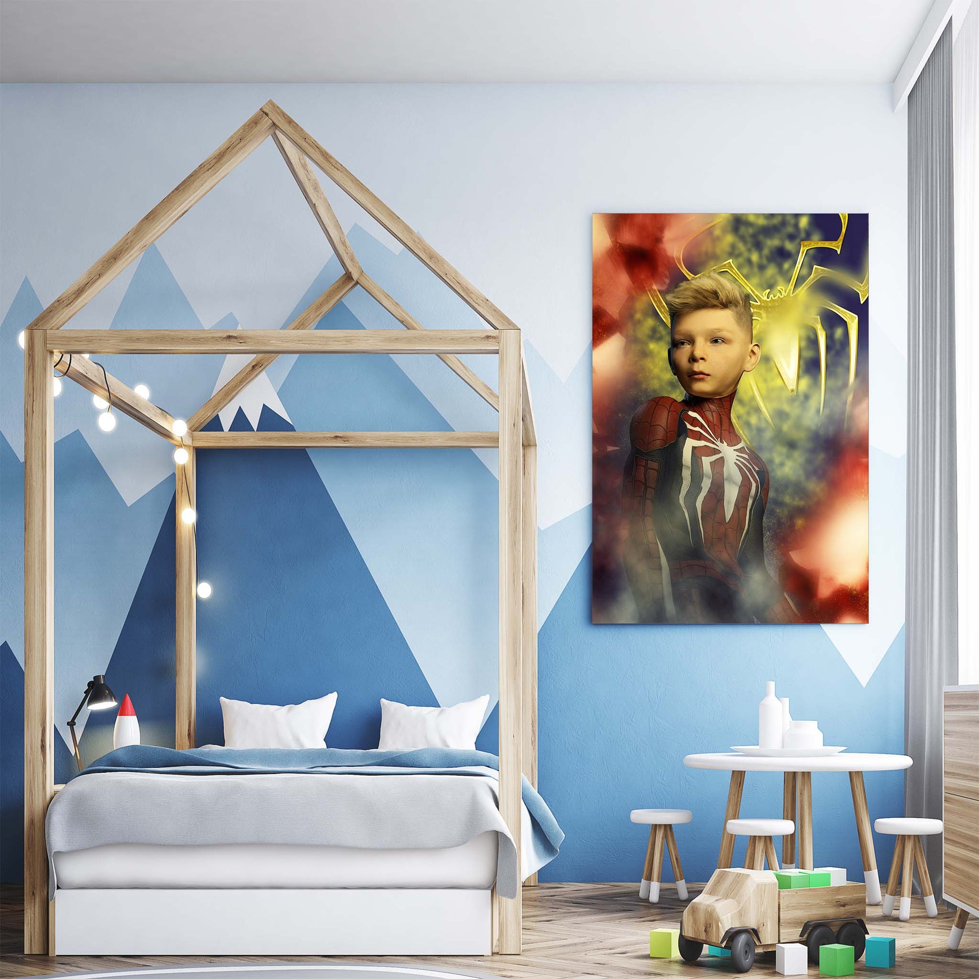 The designs can be printed on canvas with a wooden frame. The indoor Canvas canvases are printed on high-quality matte polycotton canvas. The mix of cotton (65%) and polyester (35%) gives the Canvas canvas a characteristic natural look. The odorless HP Latex ink is environmentally friendly and makes the colors pop!